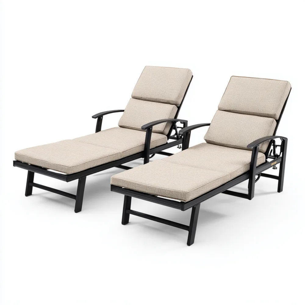 Verstellbares Gartenliege-Set aus Metall 200x70x35 cm - Beige