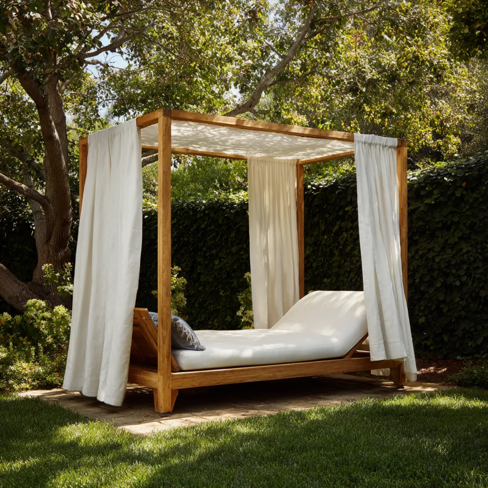 Gartenliege Teakholz 200x160x230 cm Mit Baldachin – Weiß – Modernes Design