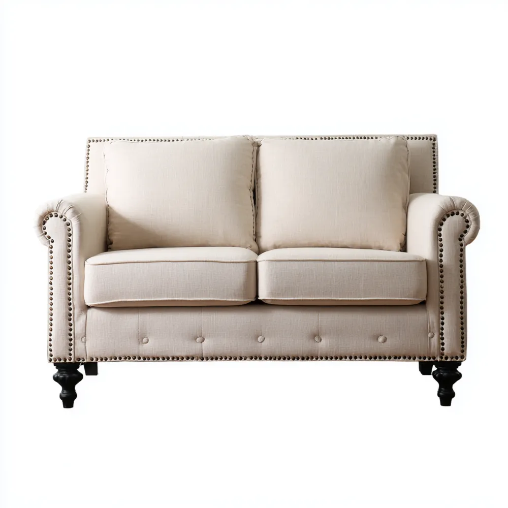 ProduktbeschreibungDieses elegante 2-Sitzer-Sofa bietet sowohl Stil als auch Komfort. Es fügt sich nahtlos in jedes Wohnzimmer mit klassischem Design ein und bietet eine exzellente Sitzgelegenheit.