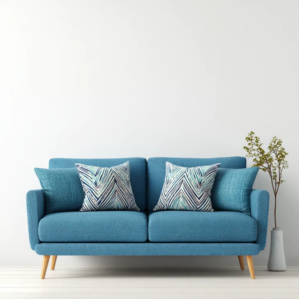 Material und VerarbeitungDas Sofa ist aus hochwertigem Stoff in einem ansprechenden Blau gefertigt. Stabile Holzbeine ergänzen das Design und sorgen für einen sicheren Stand.